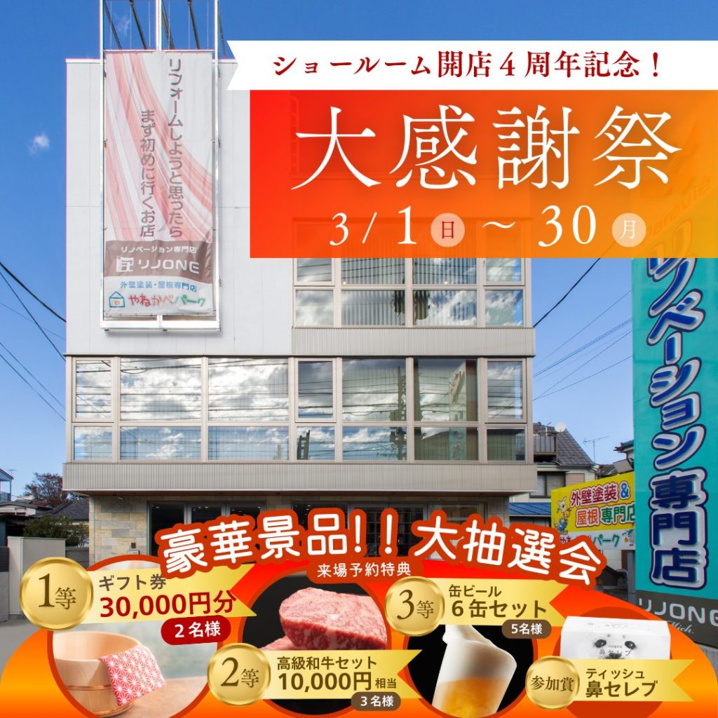 開催前ショールーム4周年記念!大感謝祭【朝霞ショールーム】事前予約特典QUOカード最大5,000円分